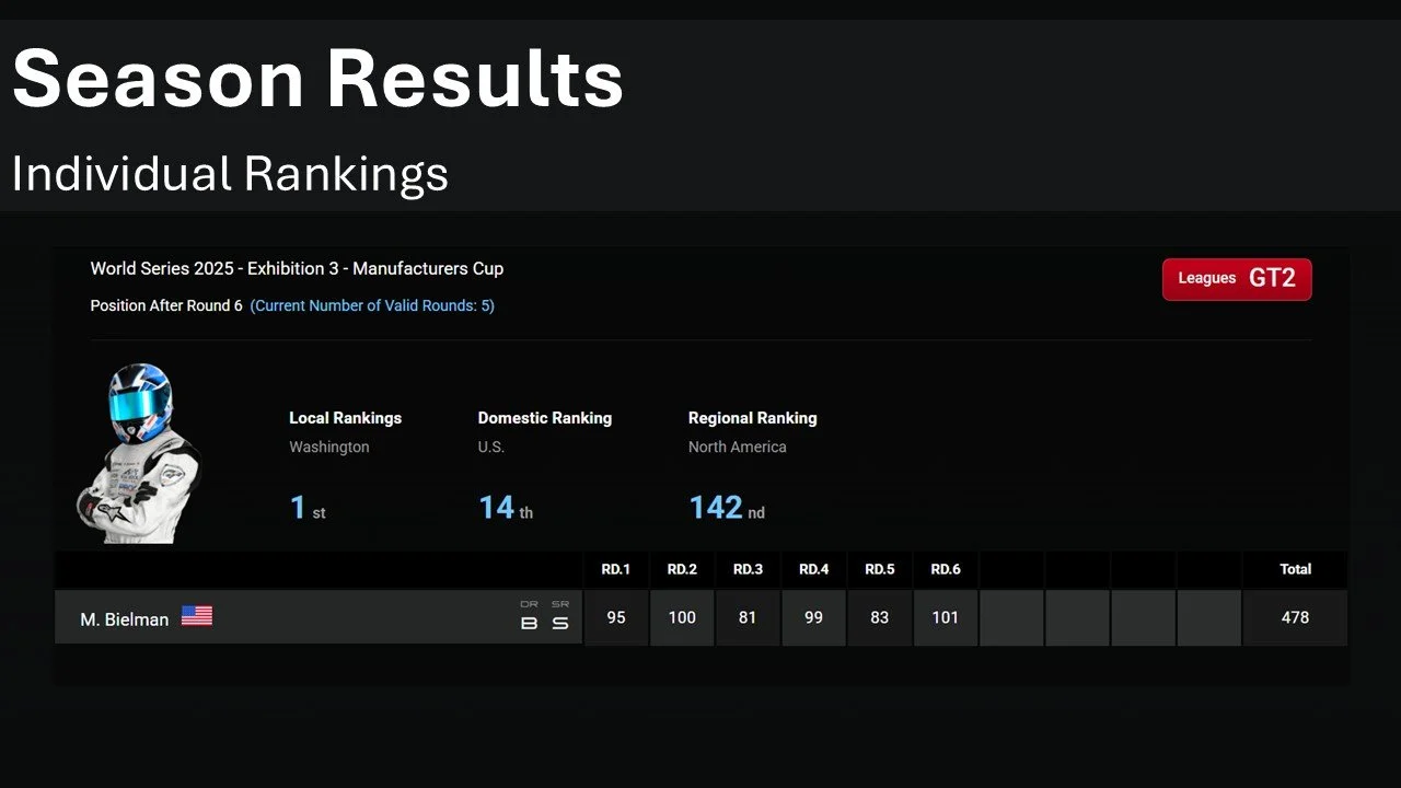 Thank you for reading and following Big Rock Racing! As I’m writing this we’re already two races into the next official series, the Gran Turismo World Series 2026 Online Qualifiers! More to come on that and other developments soon.